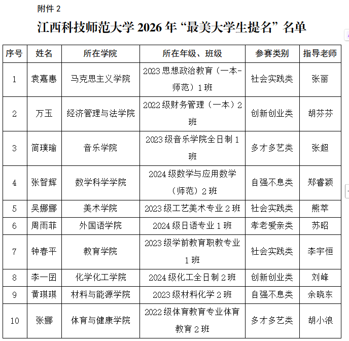 2.江西科技师范大学2025年“最美大学生提名”名单