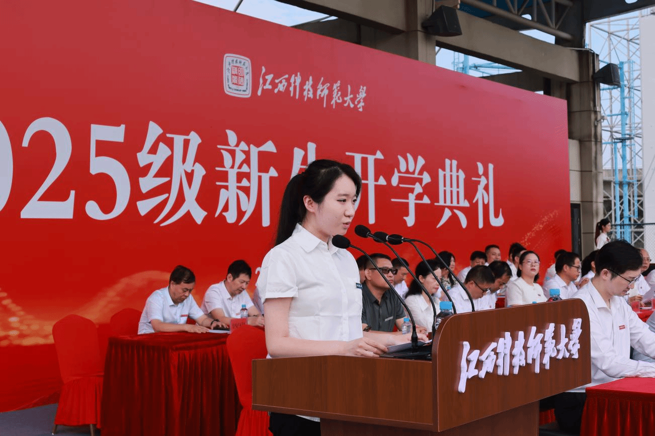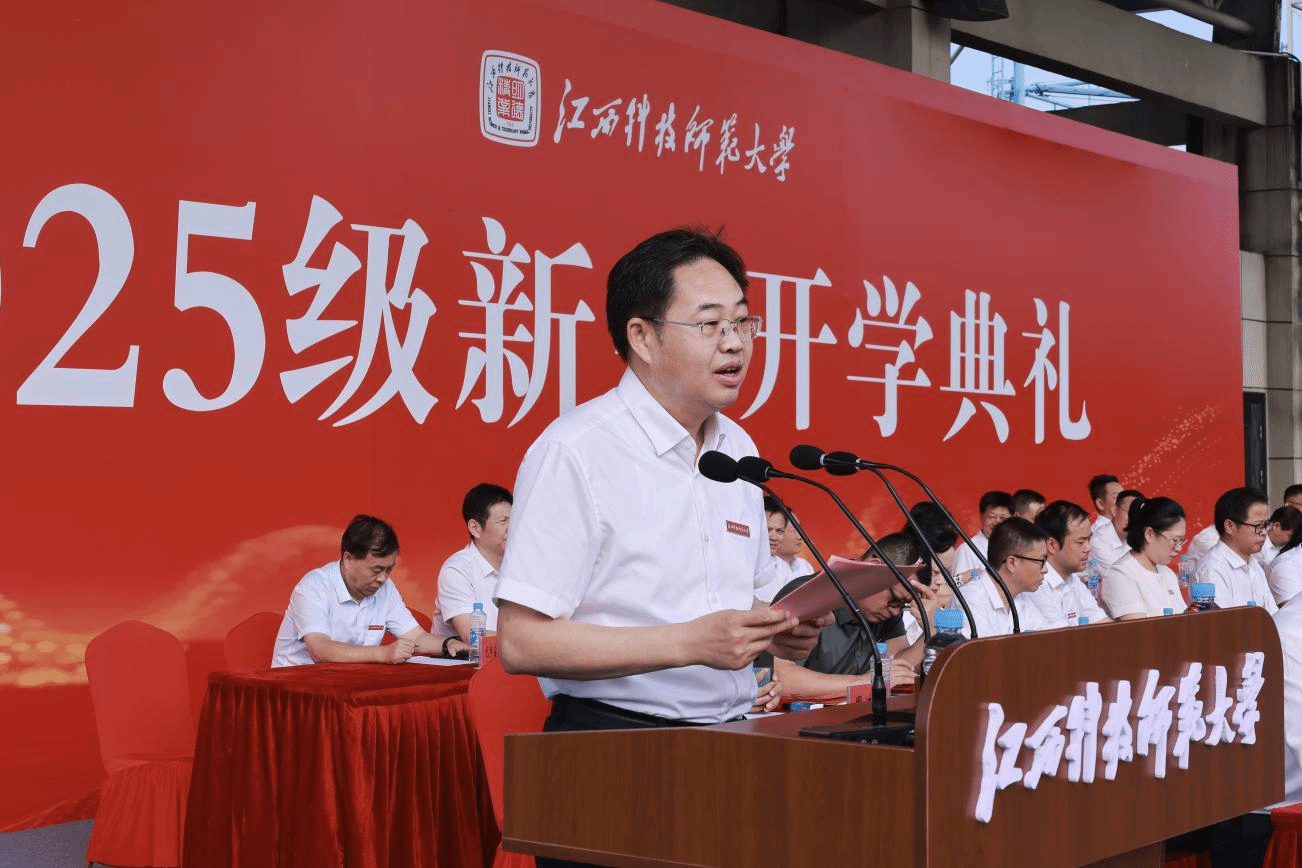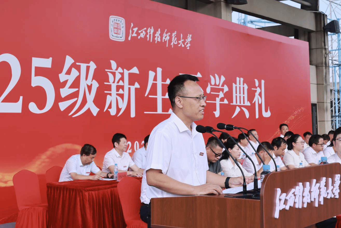 9月26日上午,学校在红角洲校区西区田径场举行2025级新生开学典礼。校党委书记裴鸿卫,校长袁雄,校党委副书记刘国云,副校长李玉保、郑鹏武、刘刚、吴志远、王小磊,优秀校友代表、北京师范大学数学科学学院原副院长丁勇教授,上海校友会执行会长、上海儒商社网络集团有限公司董事长朱甫知,南昌校友会常务副会长、江西马力智能科技有限公司执行总裁周浩然出席。刘国云主持。